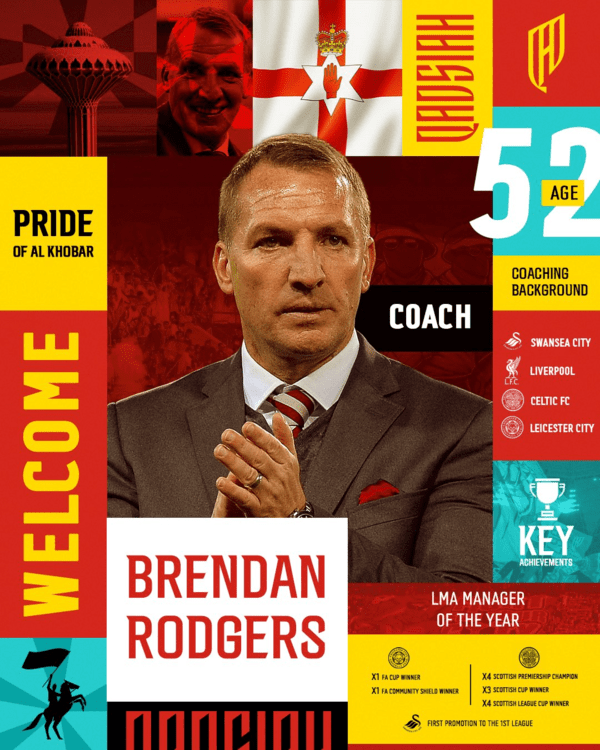 사우디아라비아가 아시아 축구의 패권을 장악할 심산이다. 불과 2년 전 사우디 퍼스트 디비전 리그(2부 리그) 소속이던 알 카디시야 FC가 유럽을 호령하던 브렌던 로저스 감독을 선임했다. 그러면서 로저스 감독의 코칭스태프에는 수석코치 존 케네디, 잭 라이언스가 합류하며, 1군 코치로 알바로 고메스 레이, 안톨린 마르틴, 세트피스 전문 코치 엘리엇 타이보가 함께한다고 덧붙였다.