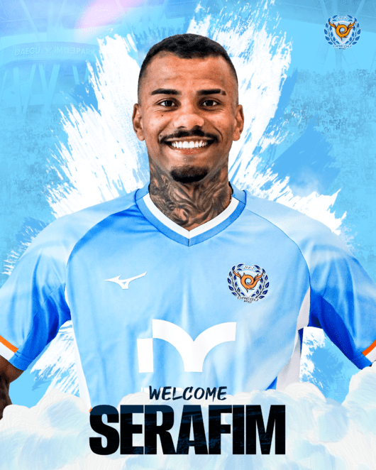 대구FC가27일(화)브라질 공격수 세라핌(27)을 영입하며2026시즌 승격을 향한 마지막 퍼즐을 맞췄다. 지난2025시즌K리그2수원삼성에서 팀 내 최다 득점(13골)을 기록한 세라핌은 이미K리그 무대에 완벽히 적응한 검증된 공격 자원이다. 대구FC는 세라핌의 뛰어난 결정력과 폭발적인 스피드를 높이 평가하며,공격 전개에 새로운 활력을 불어넣을 핵심 전력으로 낙점했다.